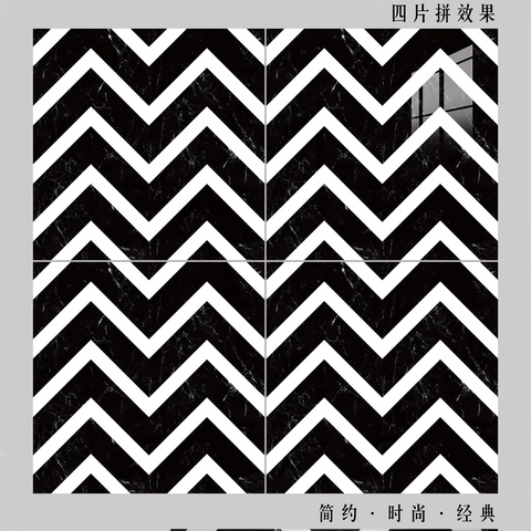 กระเบื้องพอร์ซเลนขัดเงาเคลือบเงาลายเรขาคณิตตกแต่งพื้นผนังที่เป็นเอกลักษณ์สีดำและสีขาวมันวาวสูงสำเร็จรูปขนาด